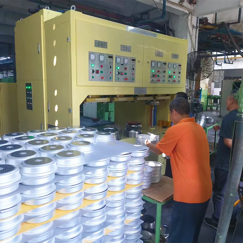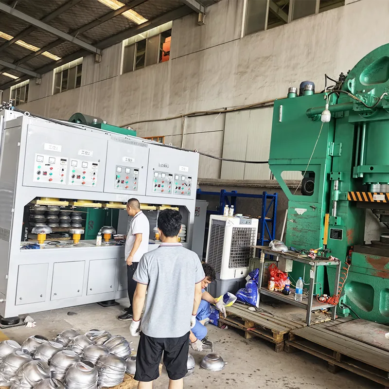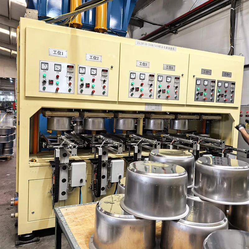 Werklocatie van een bekende onderneming die roestvrijstalen potten produceert met behulp van roterende verwarmingsmachines